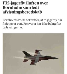 F-35 бе вдигнат във въздуха след съобщения на местните жители за странни обекти над Балтика. Полицията на остров Борнхолм потвърди прелитането на военни самолети, но военните на този етап мълчат.