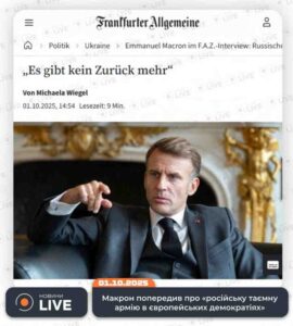 В интервю за германския вестник Frankfurter Allgemeine Zeitung френският президент заяви, че Русия днес е „най-голямата структурна заплаха за Европа“, сравнима с тероризма.