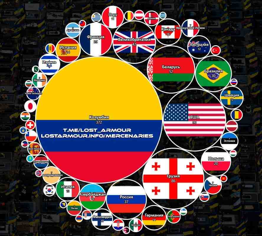 На снимката данни за ликвидирани наемници в редовете на ВСУ от различни държави