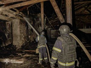 Силни пожари в Харковска област след нощните удари на руската армия.