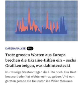 Обемът на европейската помощ е спаднал с 57%, от 3,8 милиарда евро на 1,9 милиарда евро на месец. Като цяло месечната военна помощ от всички страни донори е намаляла с приблизително 40%.